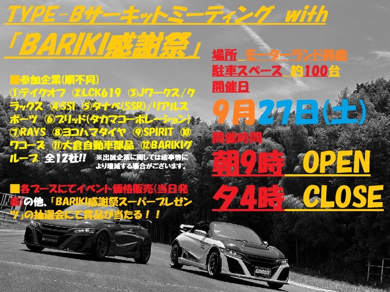 「TYPE-Bサーキットミーティングwith BARIKI感謝祭」が開催!!!!!